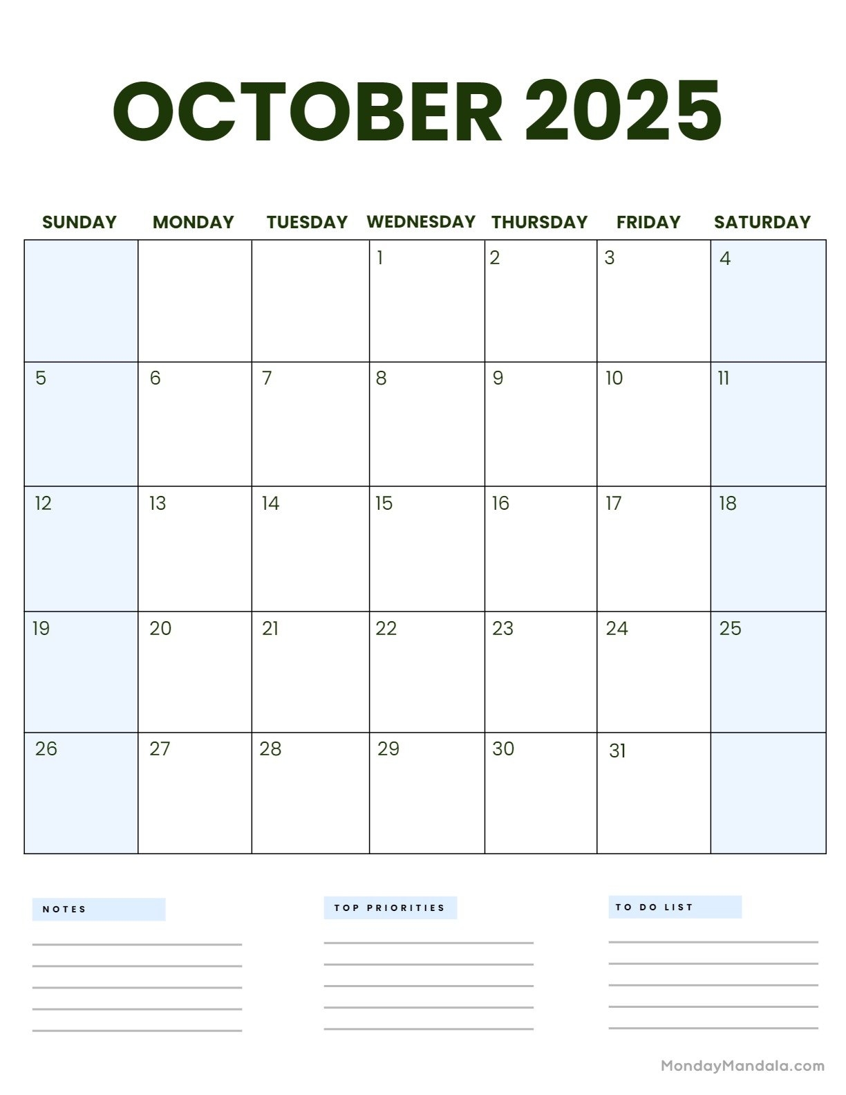 October 2025 Calendar
