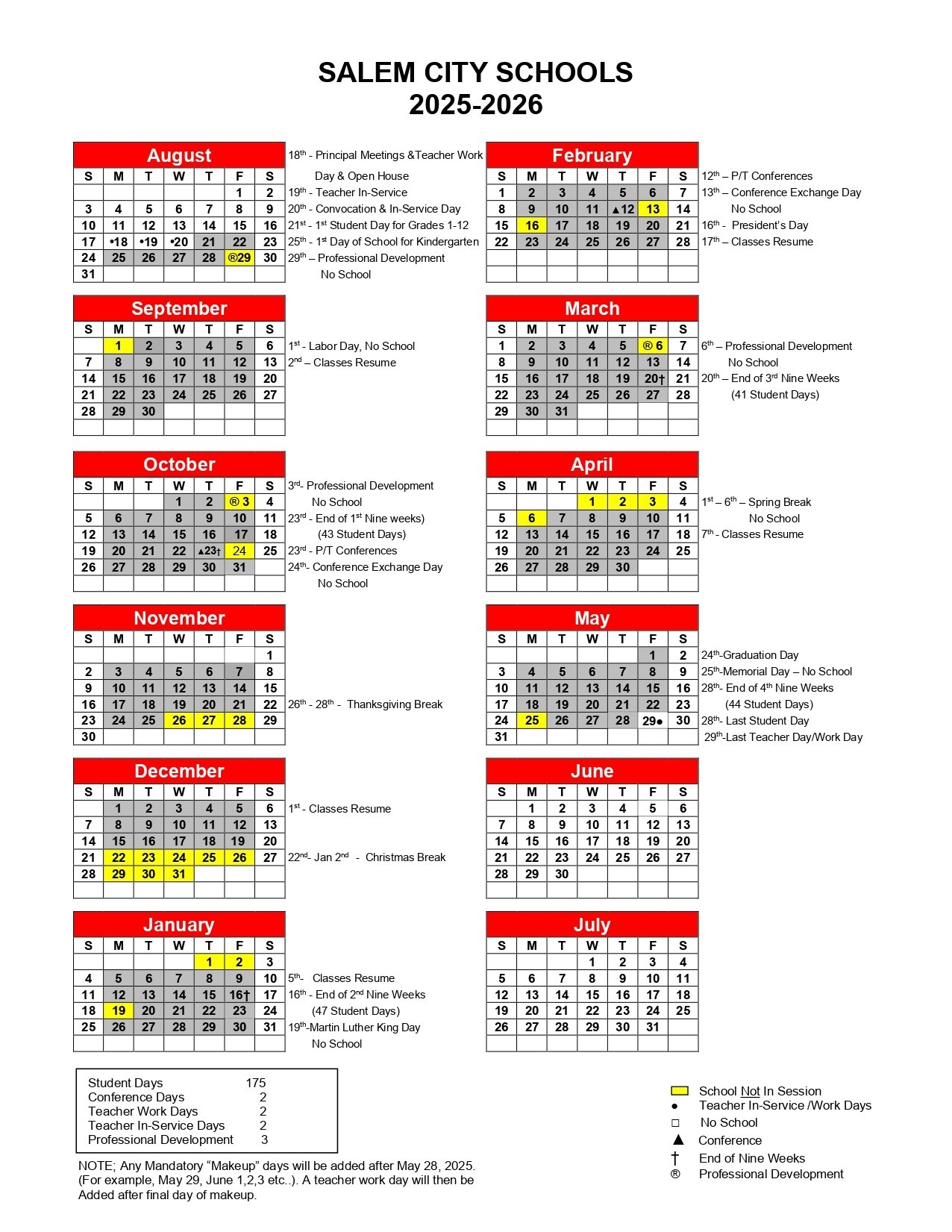 Salem City Schools Calendar 25 26 Revised PDF EduCounty