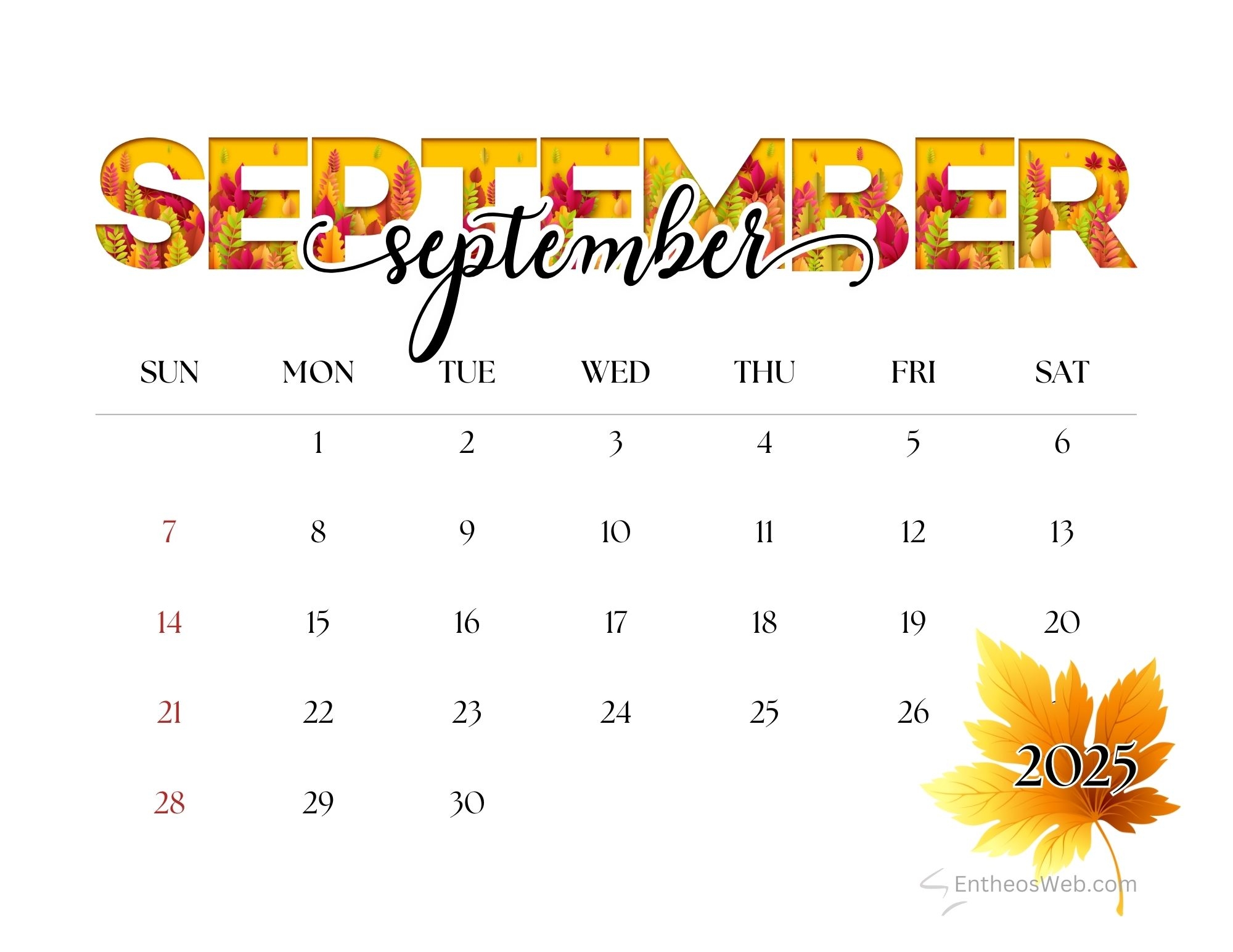 Free September 2025 Calendar Printable PDF XLS PNG Formats
