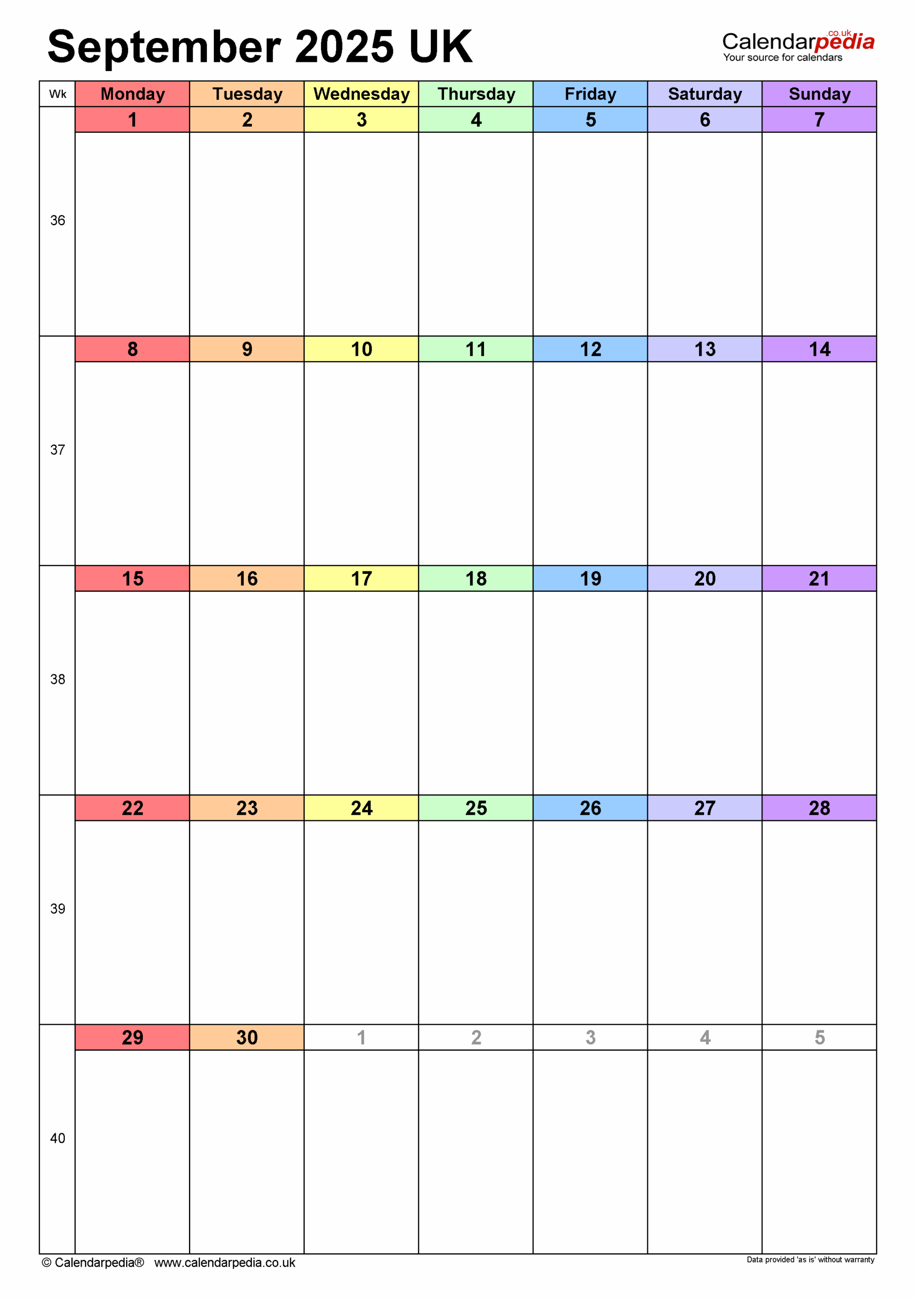 Calendar September 2025 UK With PDF Excel And Word Templates