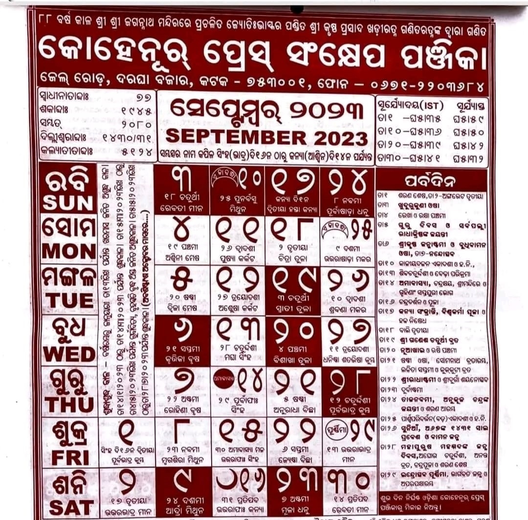 Whether you are planning a religious ceremony, cultural event, or personal celebration, the September 2025 Oriya calendar will guide you with the right dates and auspicious timings. Stay connected to your roots and embrace the rich heritage of Odisha with this traditional calendar.