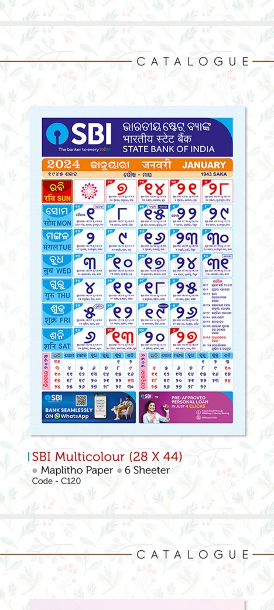 Paper SBI Odia Calendar At 10 piece In Cuttack ID 2852816583312