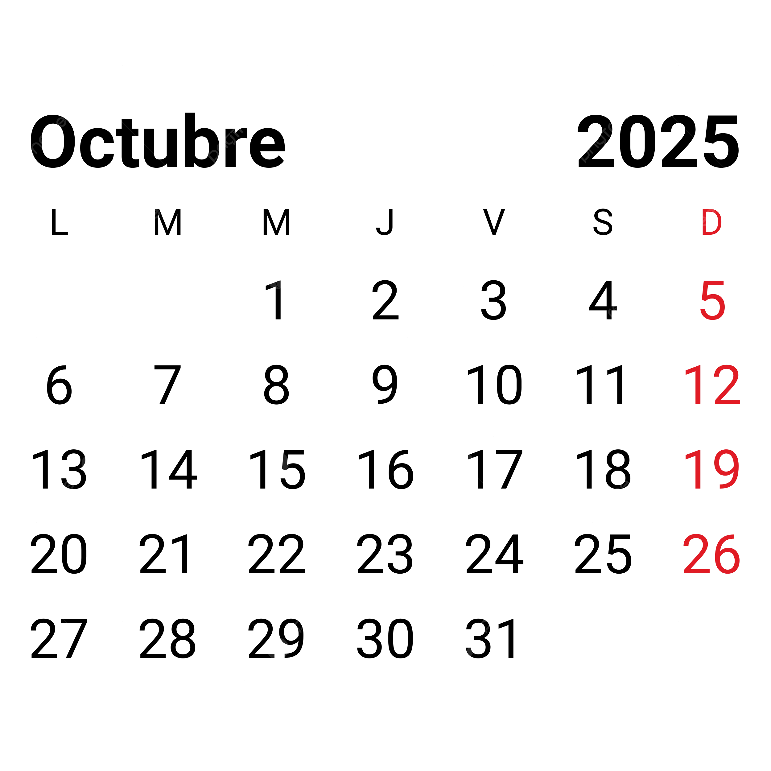 2025 October Monthly Spanish Calendar Vector 2025 October Monthly