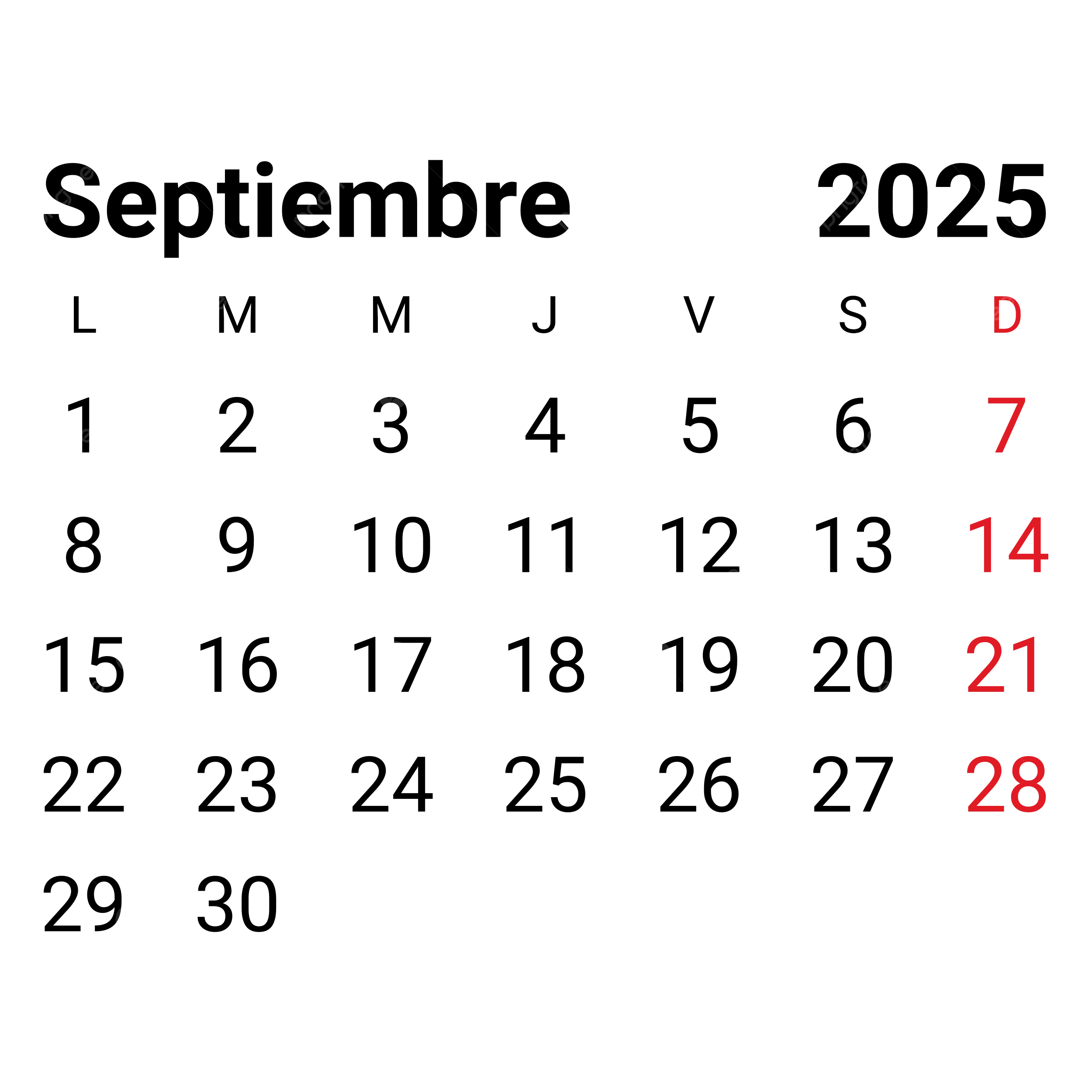 2025 September Monthly Spanish Calendar Vector 2025 September Monthly Spanish Calendar 2025 September Calendar PNG And Vector With Transparent Background For Free Download