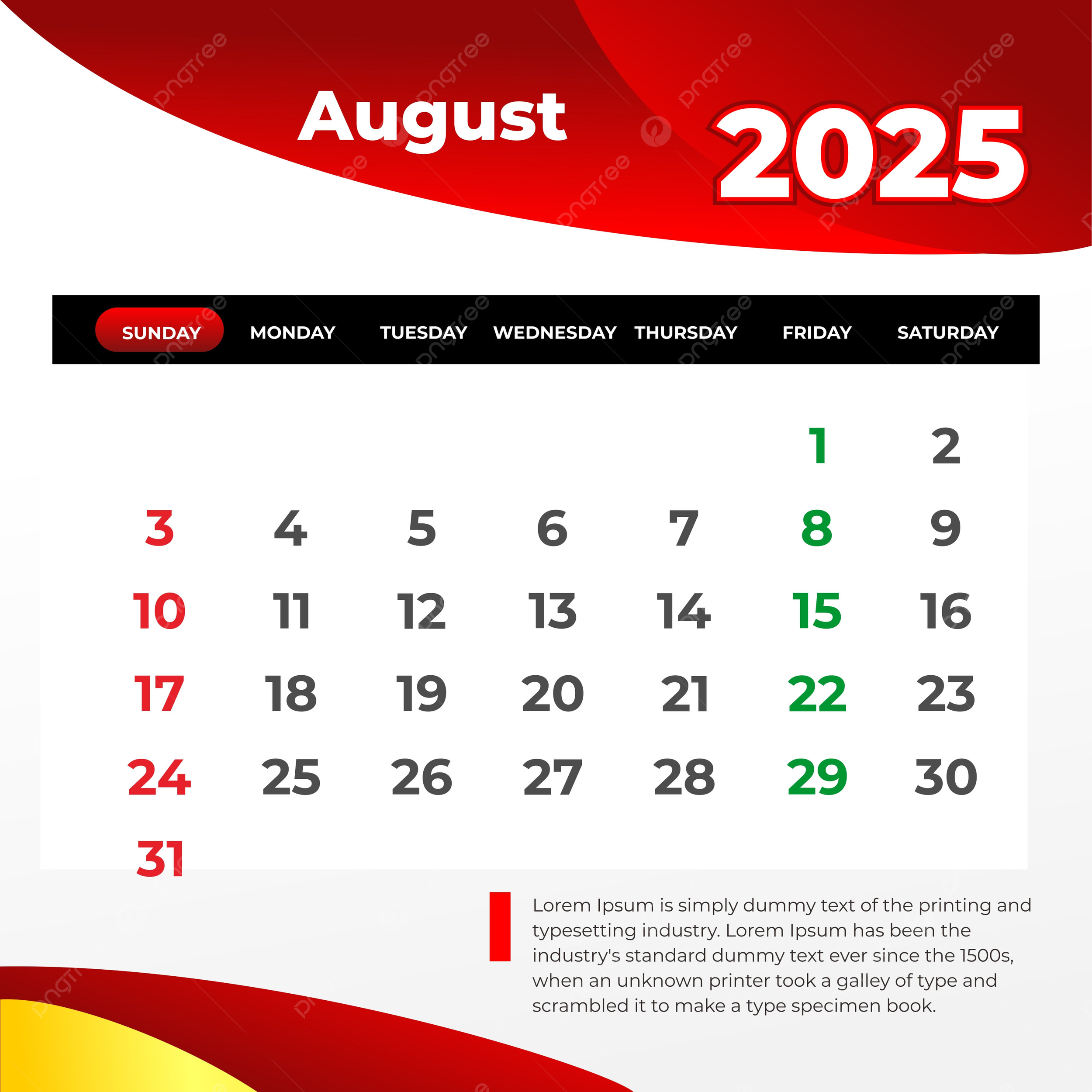 August 2025 Calendar Vector 2025 Calendar August Calendar August 2025 Calendar PNG And Vector With Transparent Background For Free Download