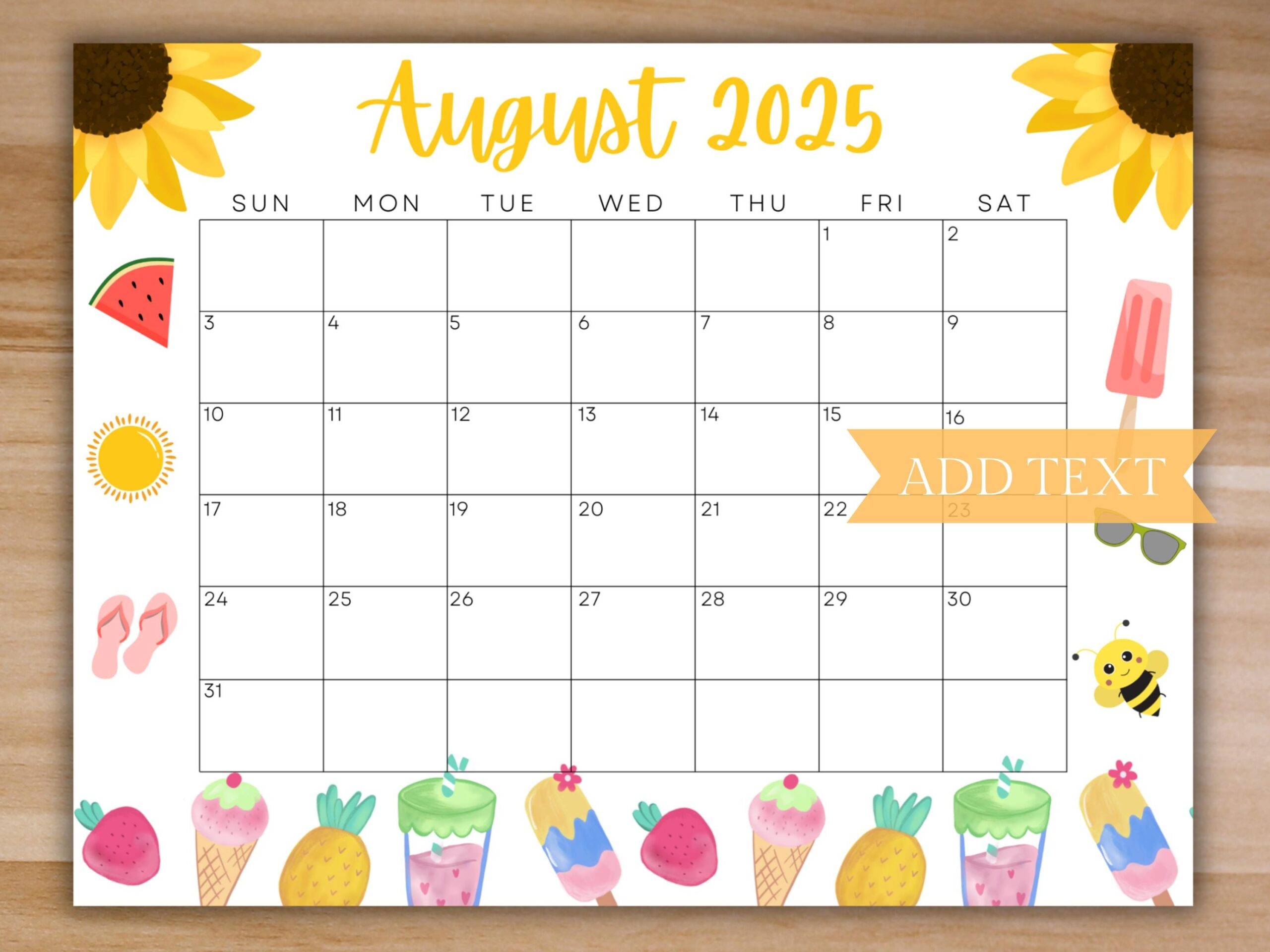 EDITABLE August 2025 Calendar Printable Calendar 2025 School