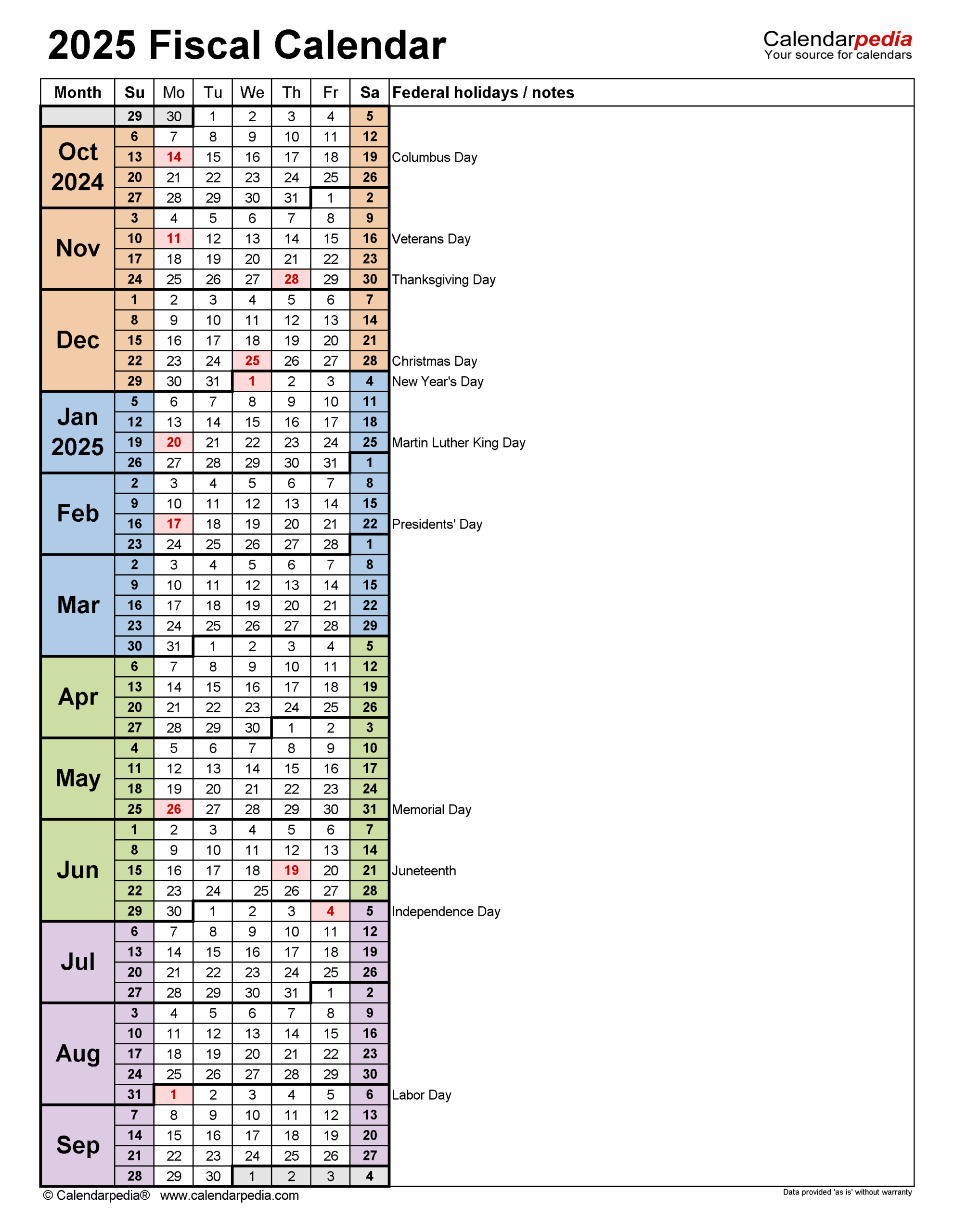 Fiscal Calendars 2025 Free Printable PDF Templates